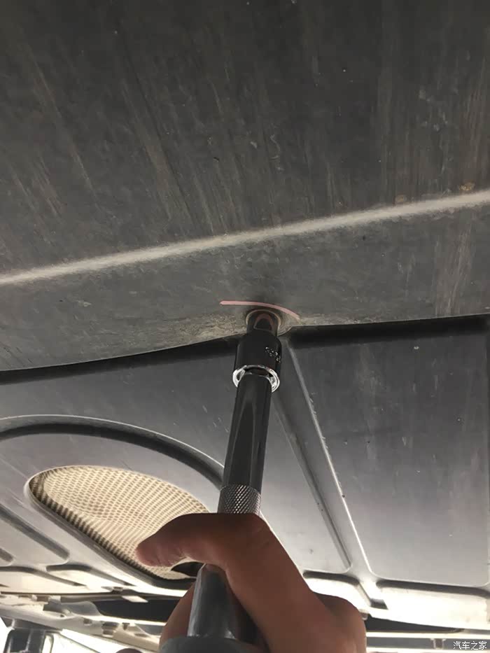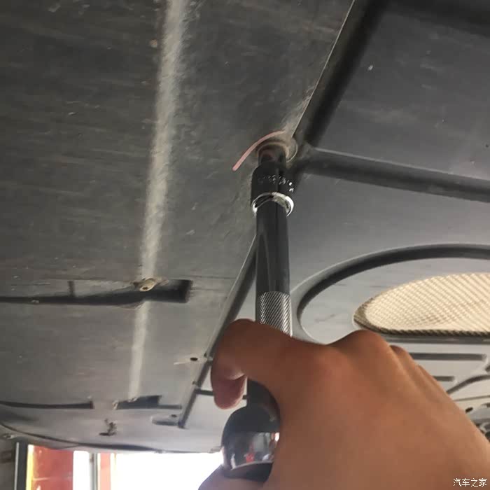拆放油螺丝了,找配套的套筒又找了半天,记得好像是17的,但是那些套筒都一个颜色,一个一个的翻上面的型号,最好找到了,又扭不动,正在这个时候,维修铺老板神出鬼没的出现了,他帮我扭动了这颗螺丝,我接着扭完