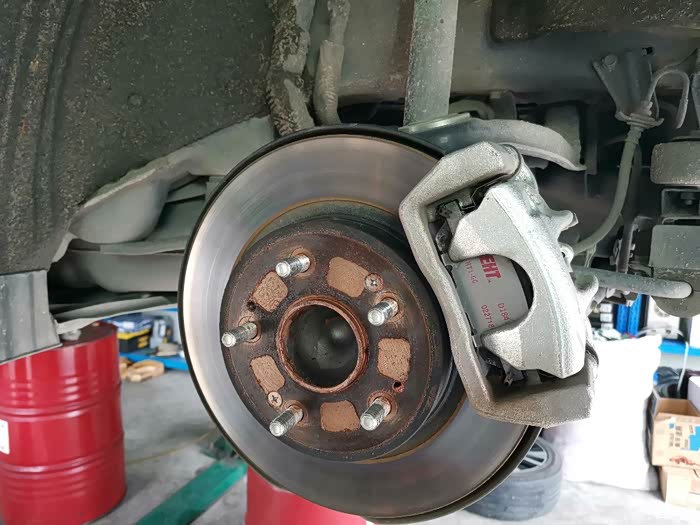 换了前刹车盘后刹车效果提升明显,于是决定把后盘一起换掉,全车刹车皮和刹车碟都用雷贝斯托。