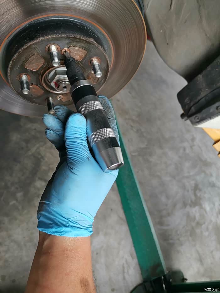 用冲击镙丝刀拧开固定刹车盘的平头镙丝。