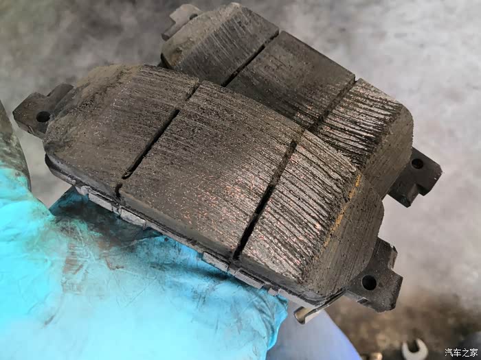 这是更换刹车皮后行驶1000多公里的原车刹车盘。