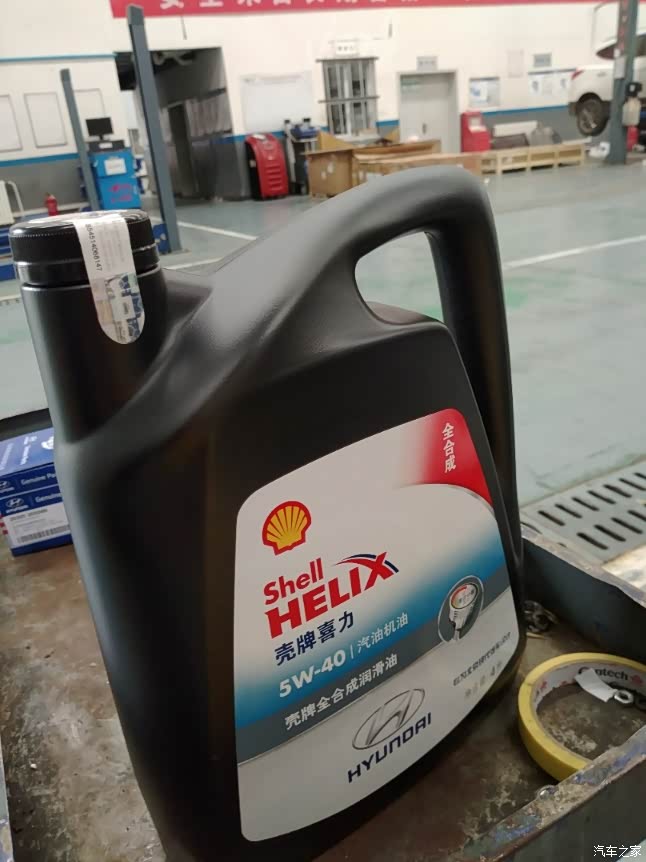 这是这次用的机油!5W-40的!这次的壳上竟然是全合成了!而且特别醒目的一白一黑!上次也是这个,但是只是写了合成,想着应该是半合成!这次难道是升级了成全成?我也问了有没有灰壳,说没有!
