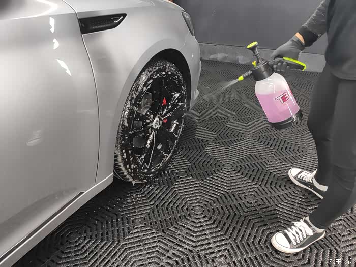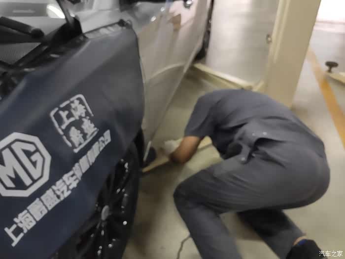 我喜欢名爵4s店的原因一是里面有咖啡游戏机休息区,还有就是就算是车间也很干净,包括这个干净的垫子。