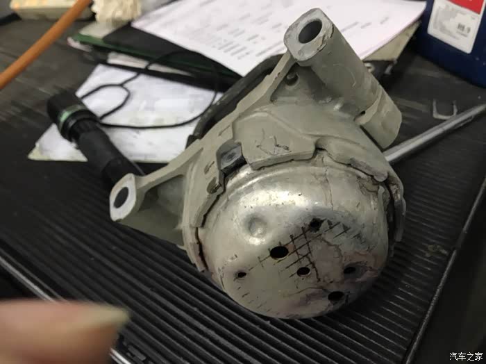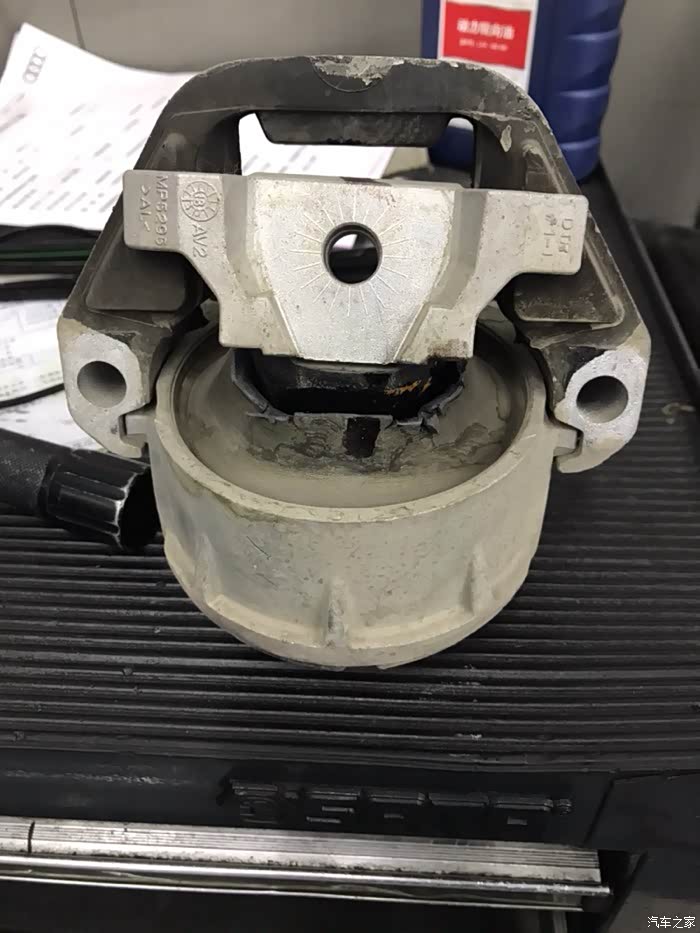 A6L c7更换机脚 5.9万公里,发动机冷启动会很响的哒哒哒几声,大概维持0.5-1.0秒,然后变成正常声音,感觉是启动瞬间什么金属撞击两三下一样,另外在发动机底部听到有固定节奏的嗡嗡声,类似鼓风机,检查发现机脚漏油,怀疑是机脚断裂,鉴于一直以来某宝的经历,这次果断4s!外面小修理厂太不规范经常各种敲打