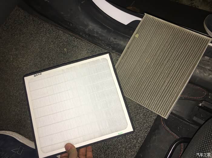 原来表面是白色,现在黑乎乎,再经过暖风一烤,霉味加热后的味道就是大家说的异味了。