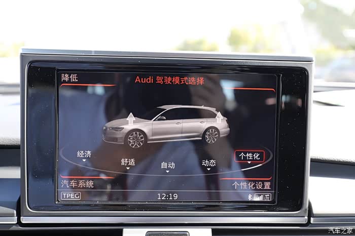 驾驶模式调整菜单。根据我实际使用感受,撇开最后一个个性化不谈,剩余的四个模式中,悬架只在舒适和动态模式下,有明显变化,经济与自动感觉不到有什么明显差异。舒适模式下,能明显感觉路面的震动被大量过滤,只有少量被传递上来,悬挂此时最舒适,跳动也最小,是我日常用车最常使用的模式。而动态模式下,悬挂最硬,跳动变大,路感最清晰。需要指出的是,如果你没有选装空气悬架,几种驾驶模式之前明显的差异型是完全体会不到。