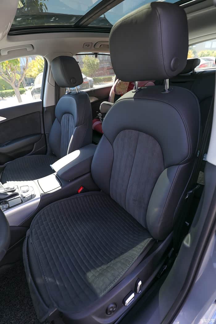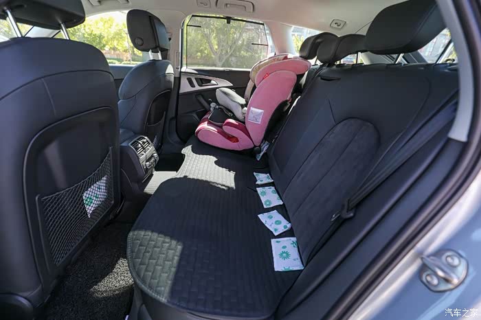 因为轴距比国产的A6L大概短10公分,所以后座空间算不上宽裕,但完全够用。我身高178CM,调整好坐姿后,我坐后排,距离前排还有两拳半的距离。