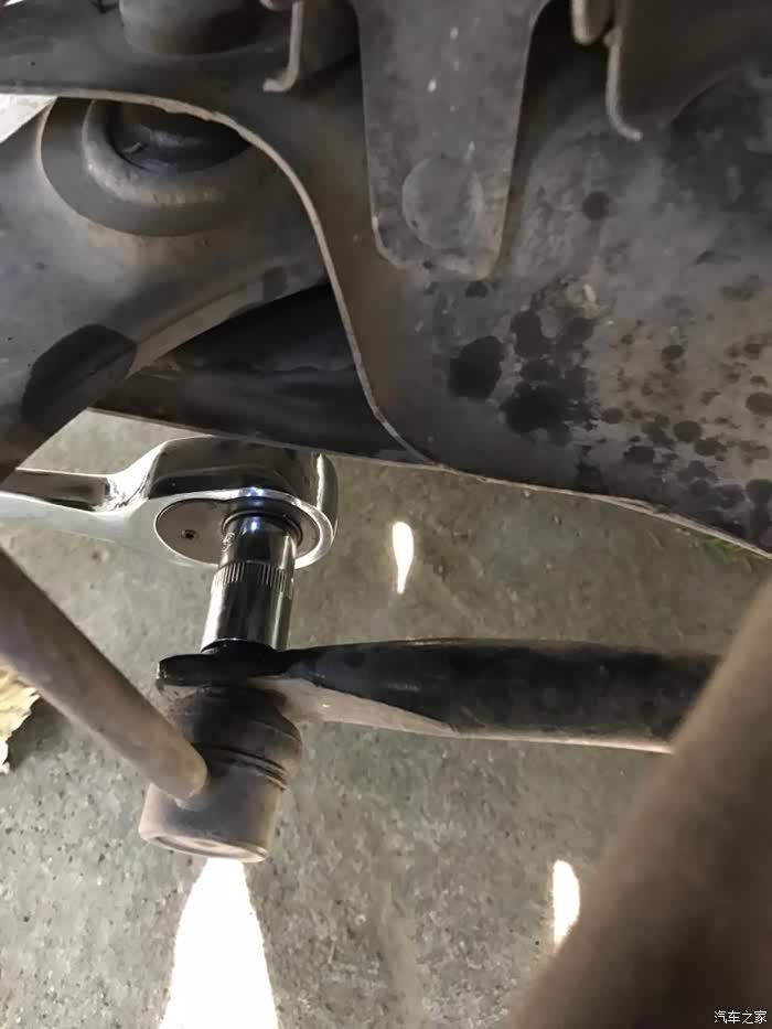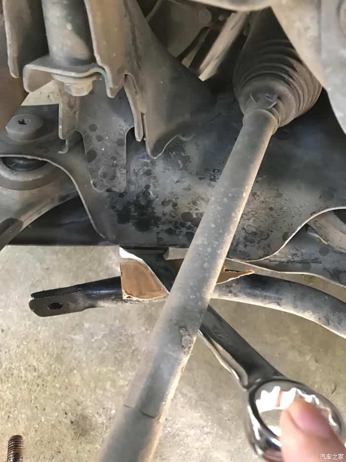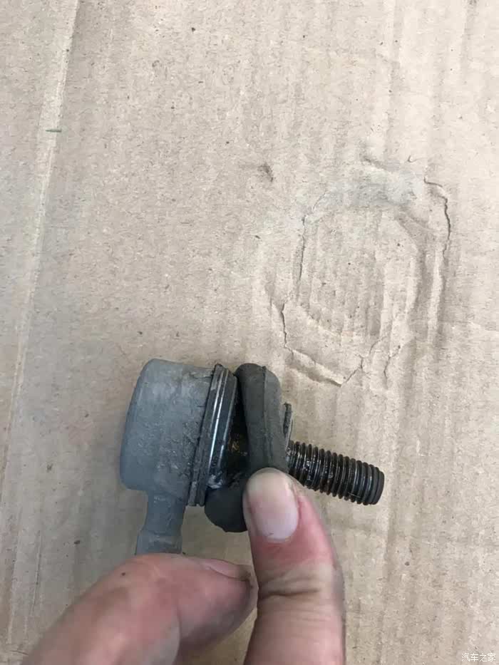 顺利拆下右侧拉杆,同样球头已开裂和润滑油漏干