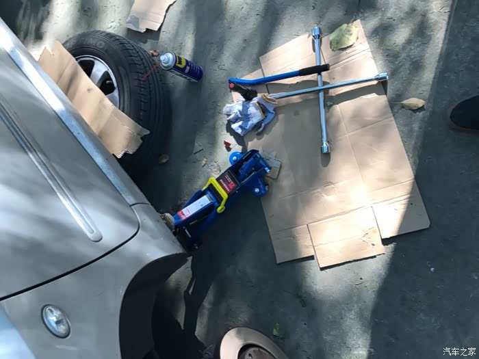 拧紧轮胎螺丝,收拾工具----完工。