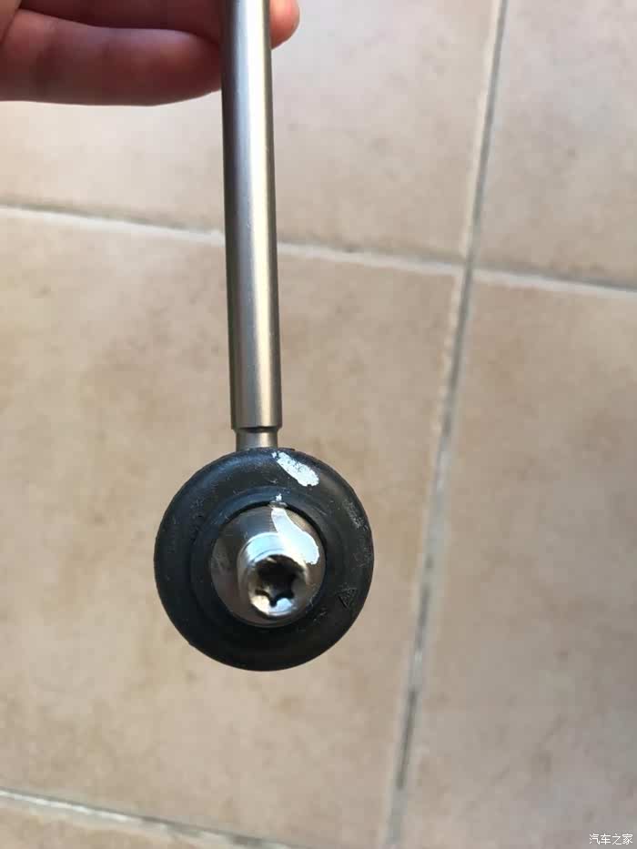 顺利取出拉杆,球头的橡胶密封处已开裂,内部润滑油已漏干。