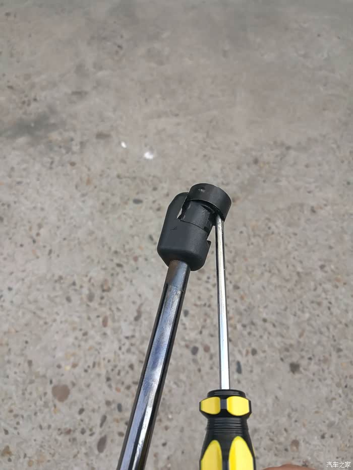 拆的时候,一把一字螺丝刀就行了。用螺丝刀从弹簧圈下这个位置的凹槽插进去