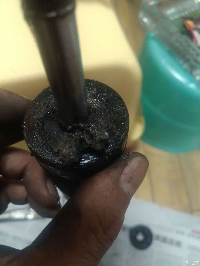缓冲胶已经严重损坏,漏出的减震油已经污染到此,粘的满是沙子泥土