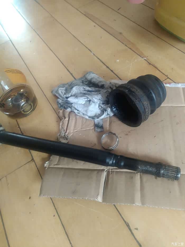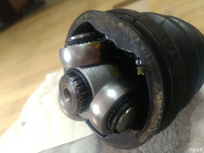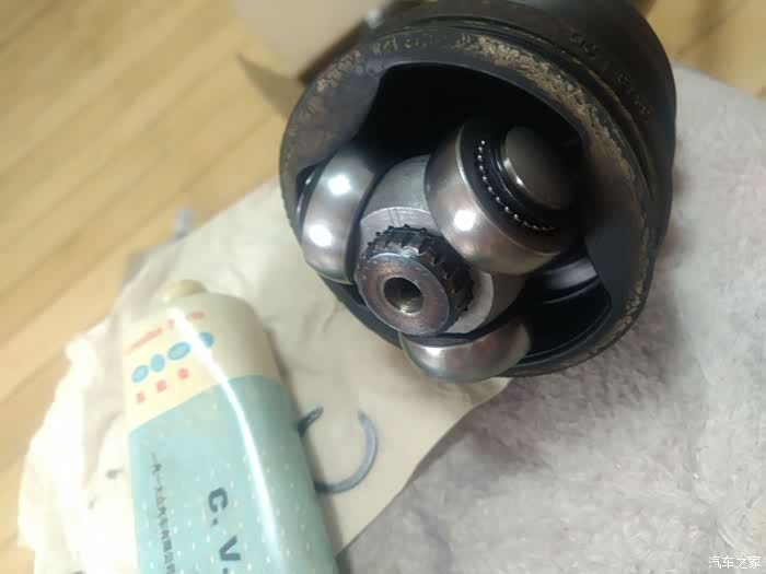两侧内球笼情况基本一样,正常磨损,无大问题无需更换,简单清洗维护即可。咋拆的咋装回去,内外球笼的更换和维护全部完成