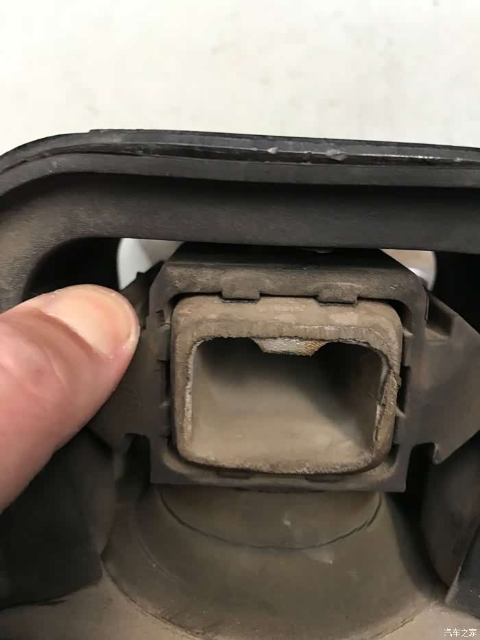 最后拆下总成后,更换的判断是正确的,因为支架橡胶底座已经严重开裂,上图是看不清的。