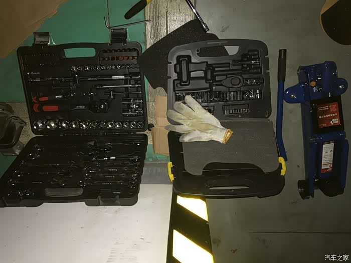 我平时使用的工具,千斤顶,2套汽修棘轮扳手套装,基本一般的小打小闹够用,家里还有套换刹车片的工具。
