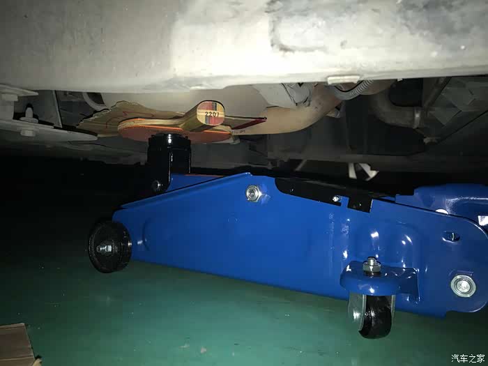 新支架安装完成,确保7颗螺丝拧紧后,放下千斤顶,车底下的工具都取出。