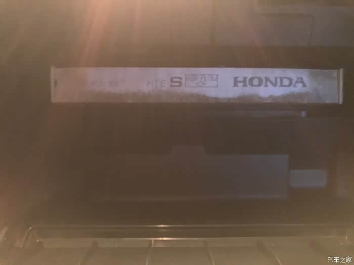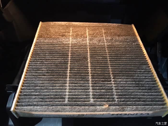 10、盖板卸下后,就能看到空调滤芯,实在太脏,都变色了。