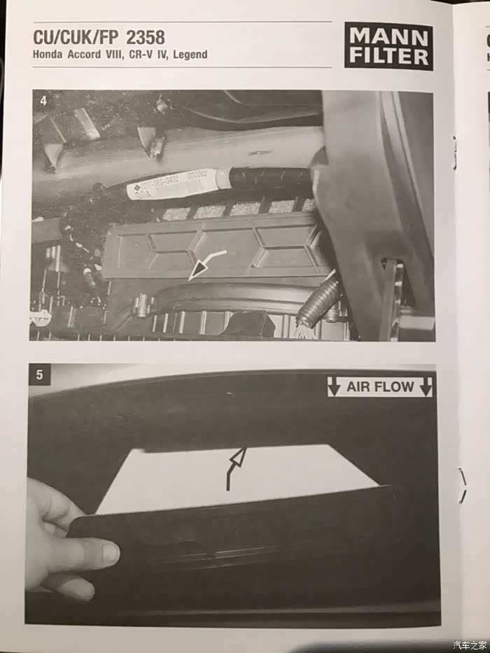 16、说明书,曼牌空调滤芯要注意上下方向,步骤5右上角有标注。