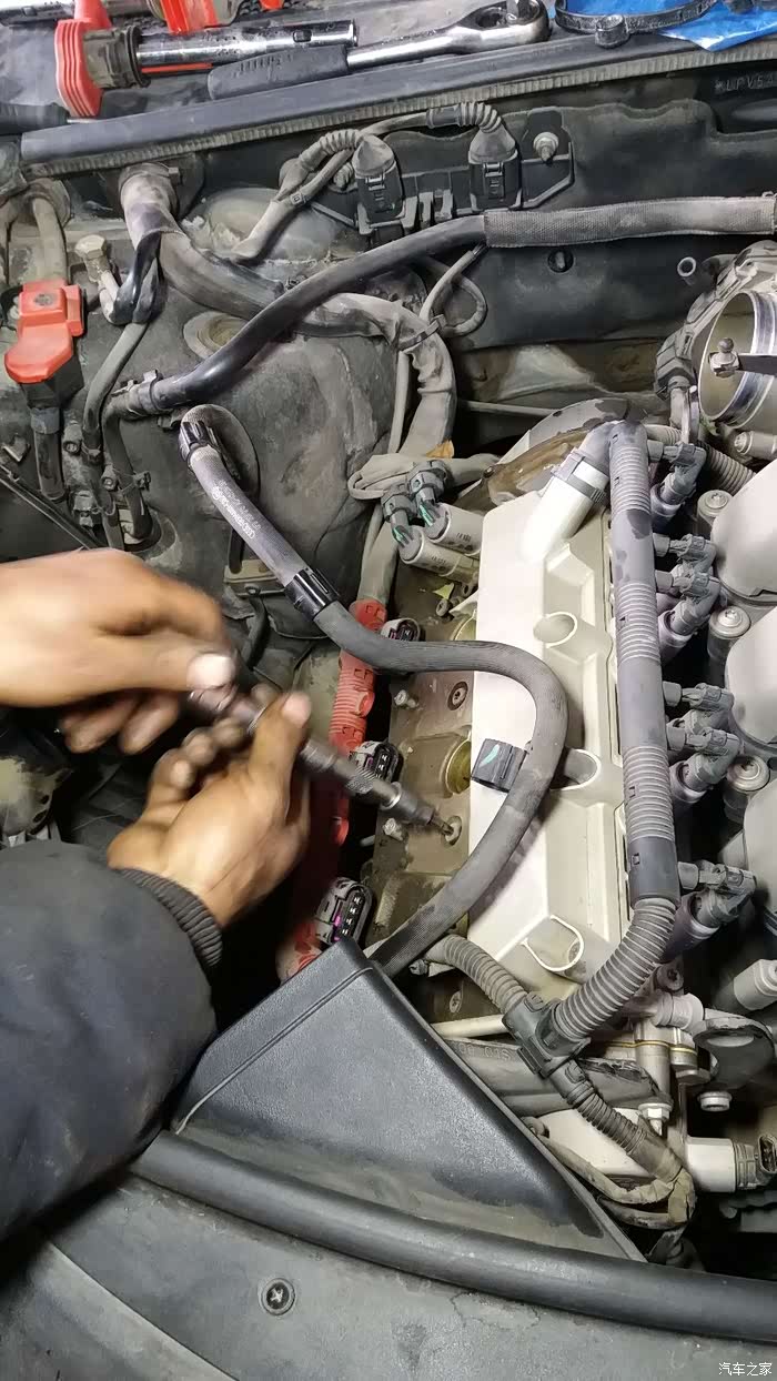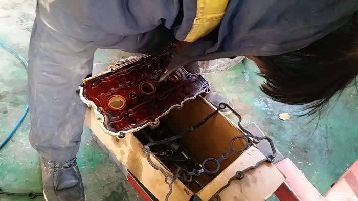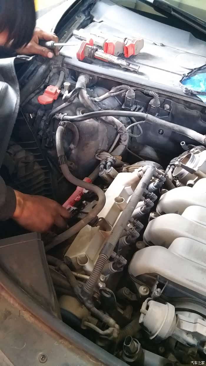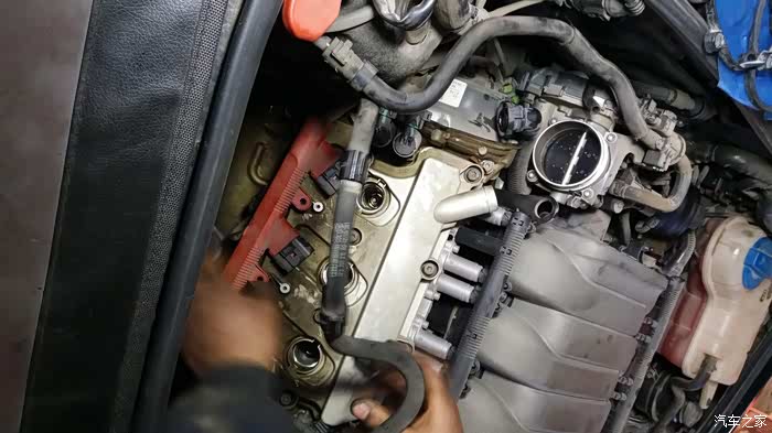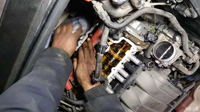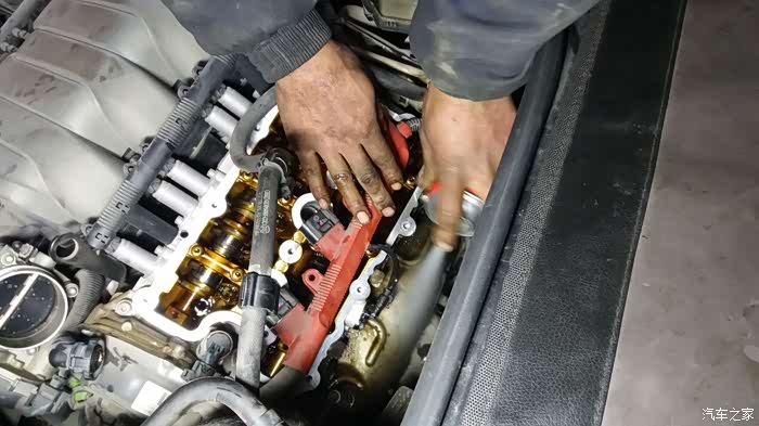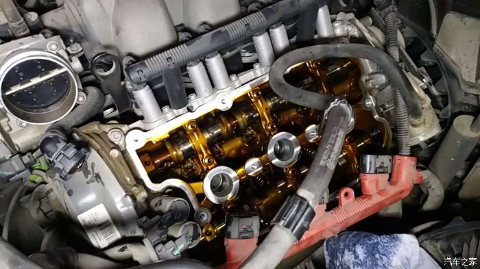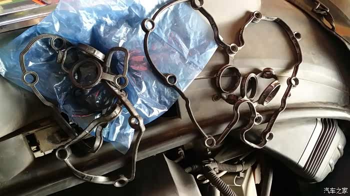 原车主之前后备箱常备机油,说烧机油。我误以为是,自吸这样的情况应该少之又少,果然在给小六大换血时候发现了漏油的踪迹,原因就是因为橡胶件老换造成的长时间的浸油。更换一侧气门室盖垫就完美解决