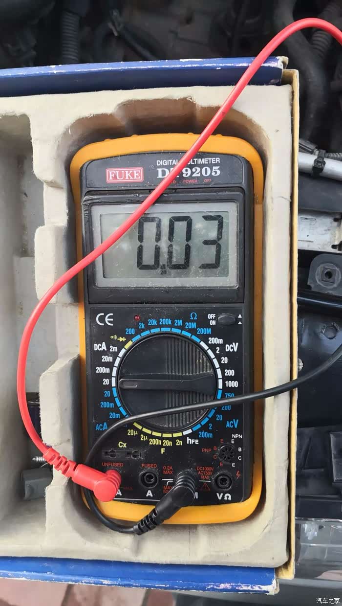 熄火后的静态电流,大约是30毫安。万用表直流毫安档的保险烧了,所以只能拿20a的档位来测量。这个静态电流没问题,因为老捷达前卫是有钥匙遥控器的,所以静态电流要稍大点。