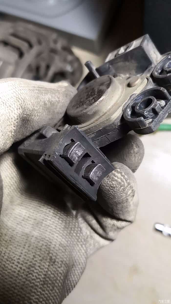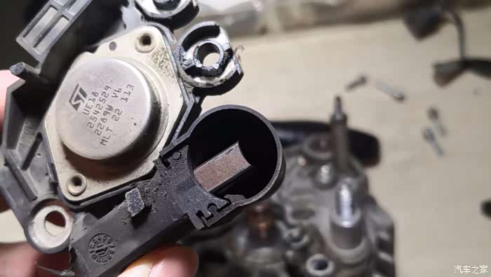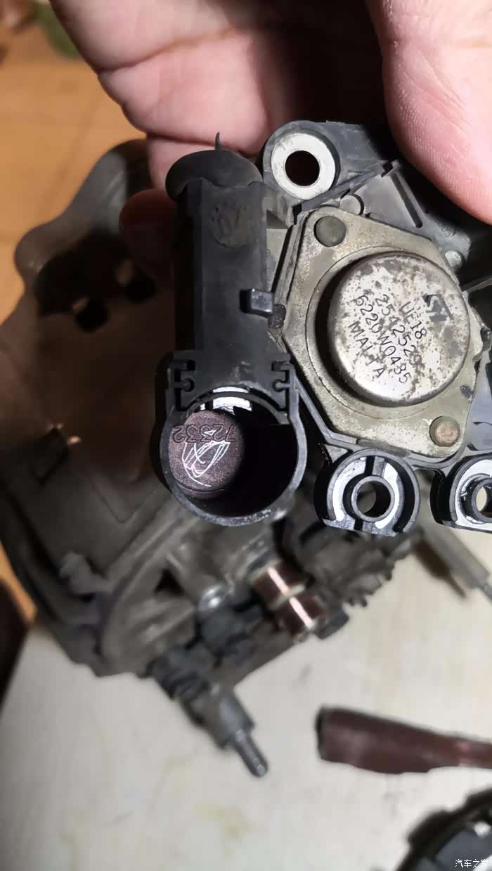 发电机是法雷奥生产的,用了20w公里。其实还能维修下,只不过比较麻烦,需要大功率的电烙铁拆下整流桥,拉出磨损的铜套,更换磨损的碳刷。