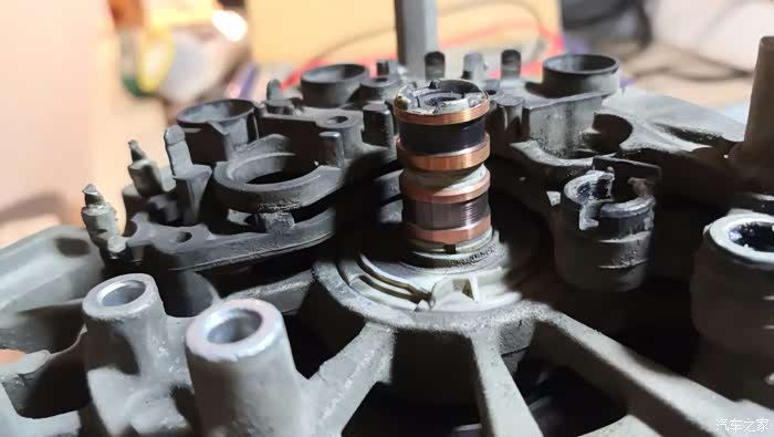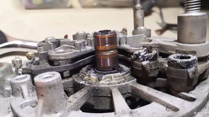 拆开看,发电机铜套已经磨损的接近极限了。怪不得前些天电瓶缺电,应该和这个也有关系。