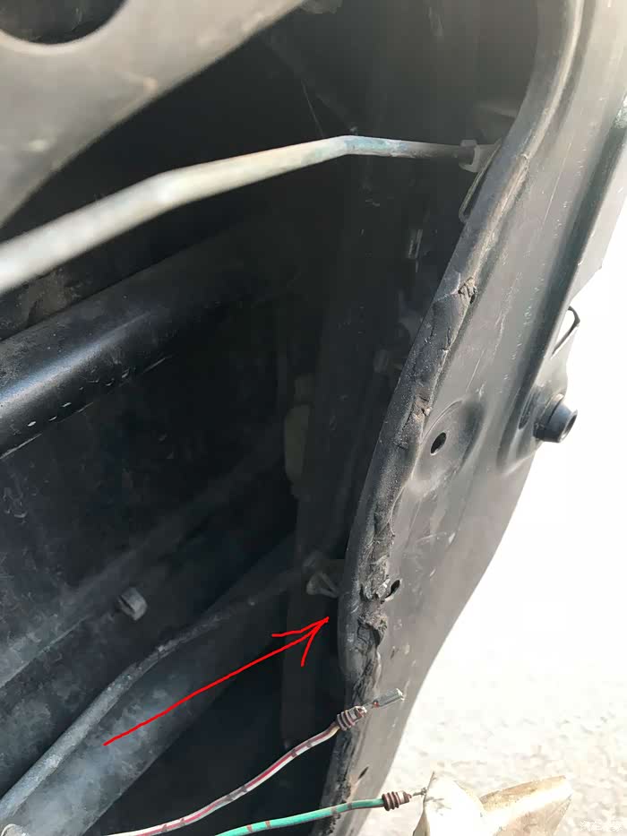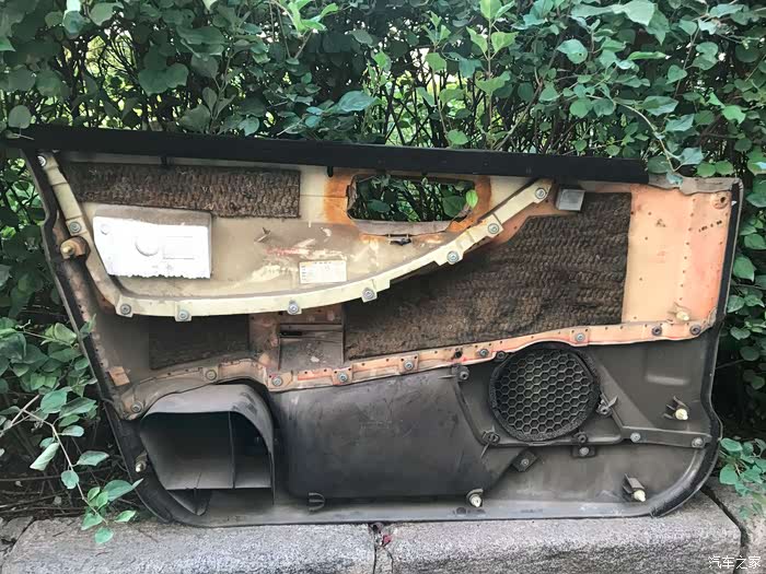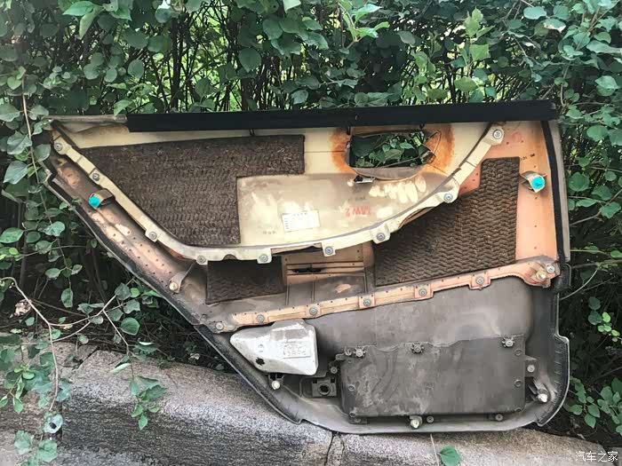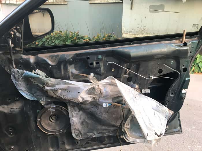 卸下内饰板,竟然还有防尘塑料膜,说明这面修的次数要少