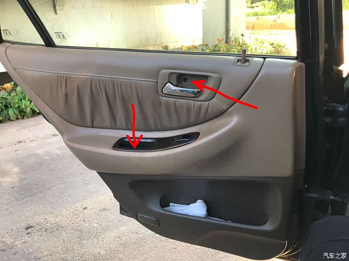 最后再看看副驾门锁是什么情况,右前门比后门多了一个车门总开关,卸下内饰板与后门基本相同。
