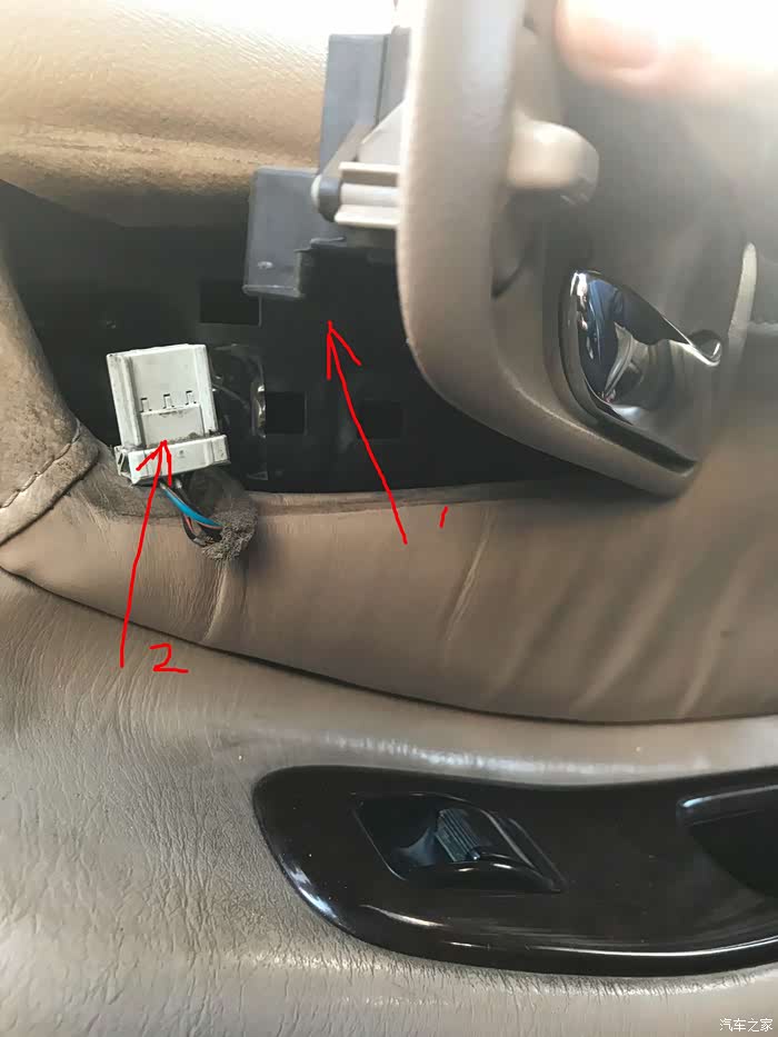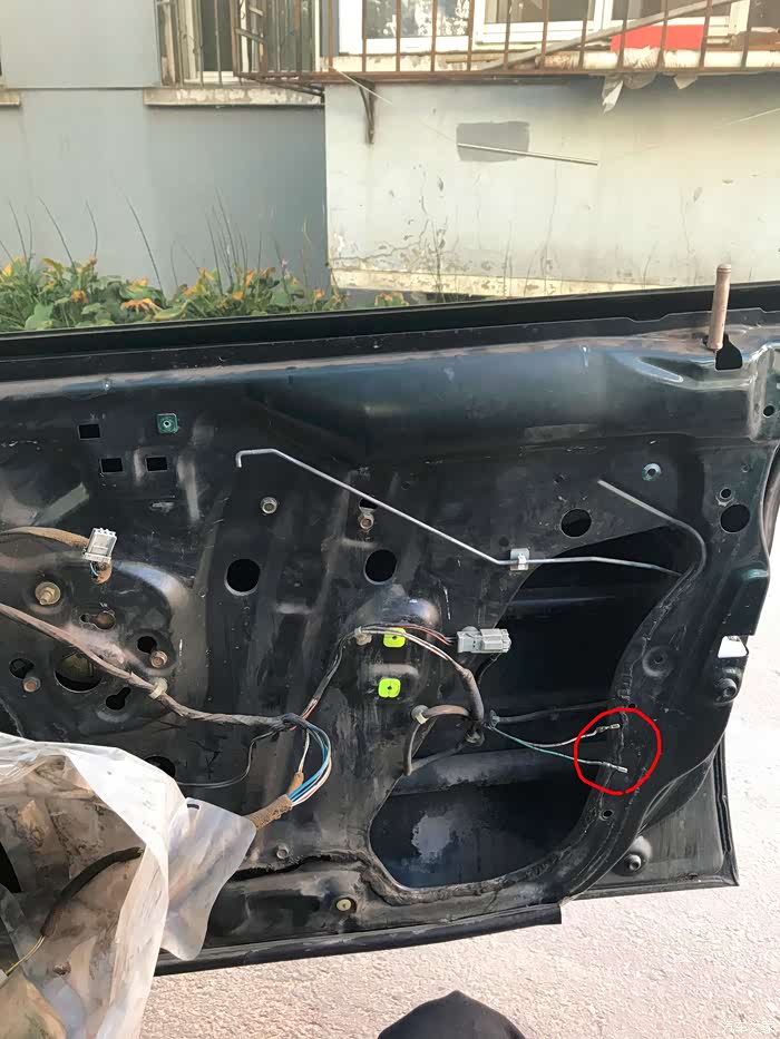 拿下保护膜没有发现遥控锁电机,即看到两个裸露的线头,见红圈中