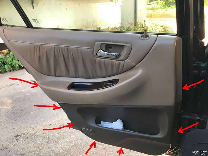 用一字螺丝刀撬开门内饰板,内饰板是用卡扣与车门相连接的,撬时也要用巧劲,最好用大一点的螺丝刀,一般只要撬开一个卡扣就可以了,手伸进去慢慢将其他卡扣与门脱开内饰板就可以取下来了,注意螺丝刀不要伤到油漆
