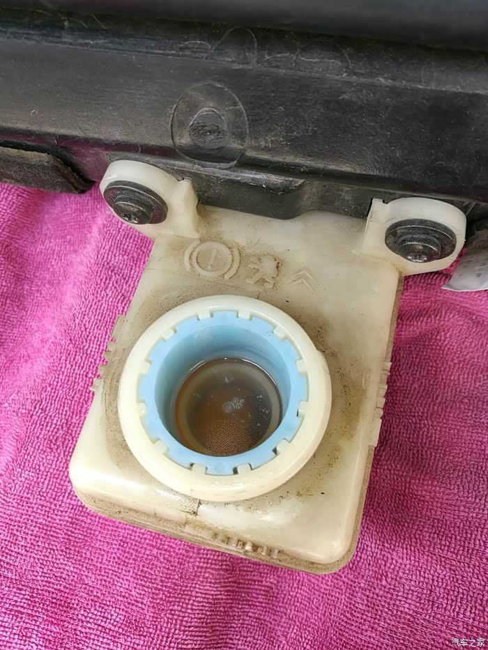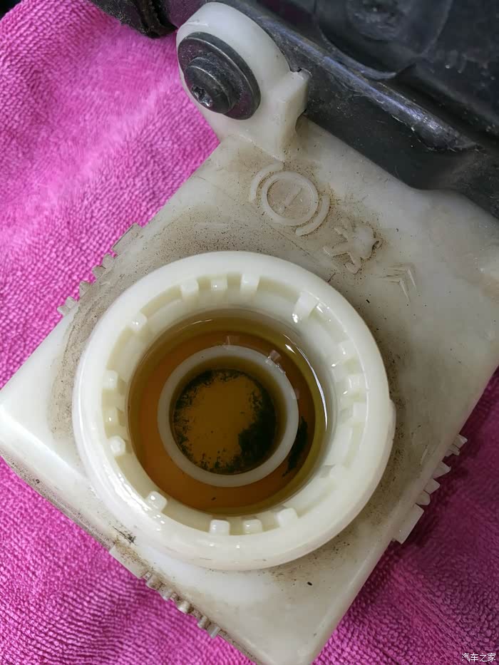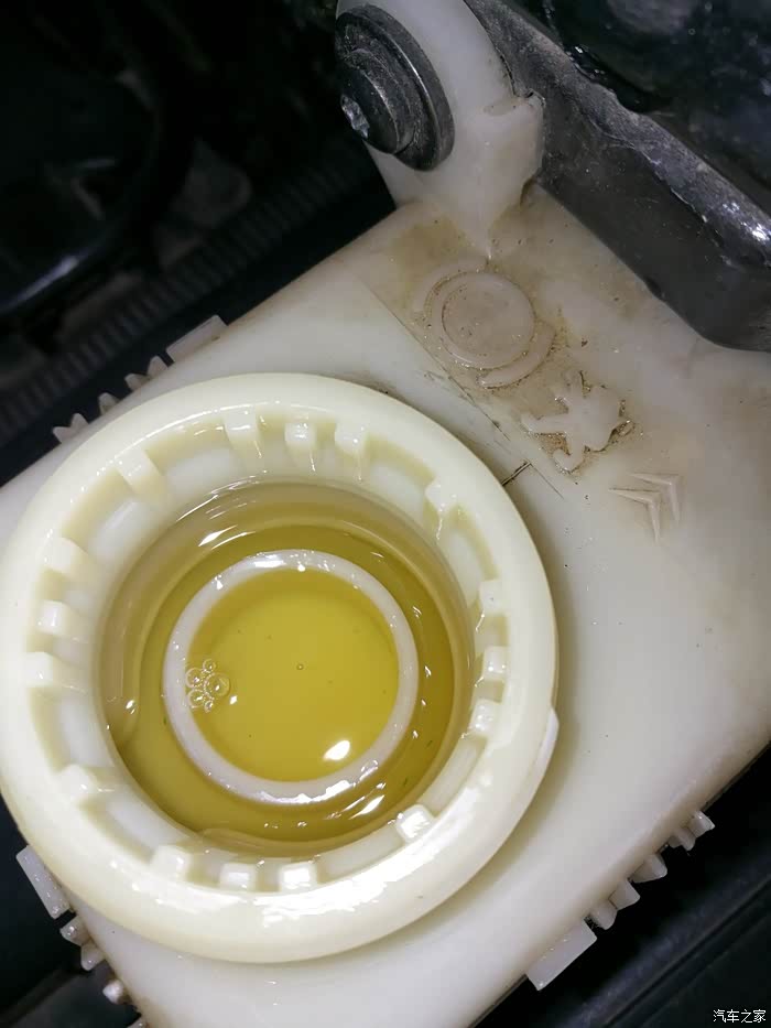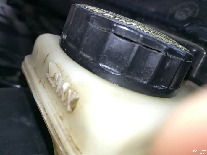 换完油,试车,踩刹车有硬梆梆的感觉了,每一脚都有,稍微用力,车子有点头,推背的感觉了。和原来换油前不一样了。 突然发现油壶盖裂了