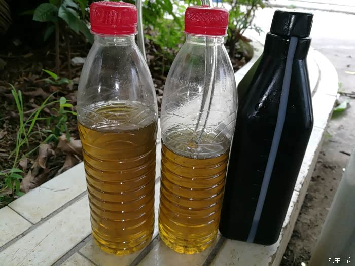 旧油和新油颜色几乎一样,分不出新旧油。前车主2014年01月换的。 新油瓶上有刻度。
