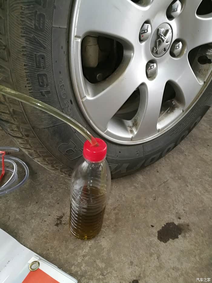 最后总结1、工具,梅花扳手11mm后轮,8mm前轮,前轮螺帽小,扳手不能太厚,太厚,油管没有位置插了。2、小一字螺丝批,撬滤网。3、注射器,抽油壶油。4、PU管,80cm,8x5,内径5mm。到前轮需要,割掉一小段,让管头更紧。5、两个矿泉水瓶。6、滤芯线60cm,固定扳手。顺序,据说按离油壶远近来后右,后左,前右,前左。后右换油大概400ml,后左250ml,前右150ml,前左100ml。单我好像还剩200ml,不知道那边没放够?最好两个人,据说专业流程,关键是避免空气进入,单人是时有油负压,估计很难进去。