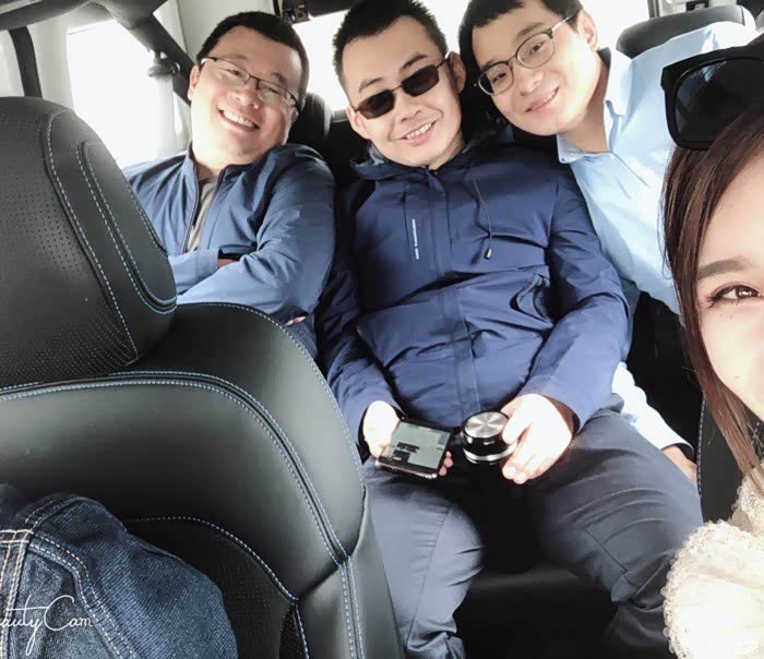 其实后备箱还坐着两个,因为只有两公里,大家凑合挤挤,大白的空间绝对没得说。