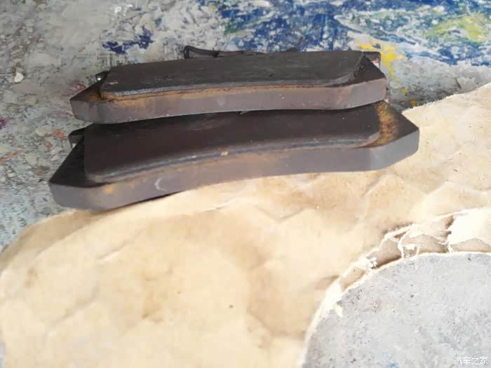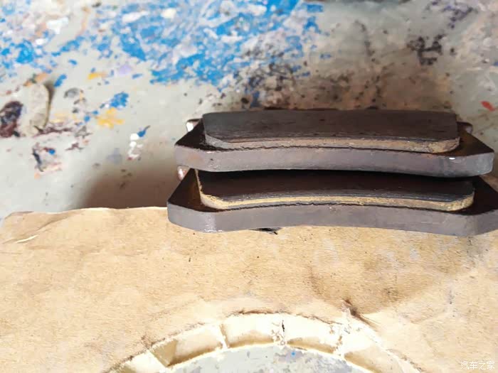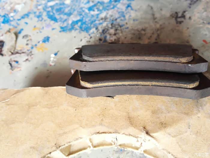 拆下来的左边刹车片的的厚度,是不是很薄,刹车力量还是很好的,但是必须更换了
