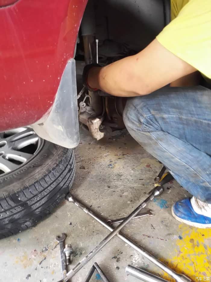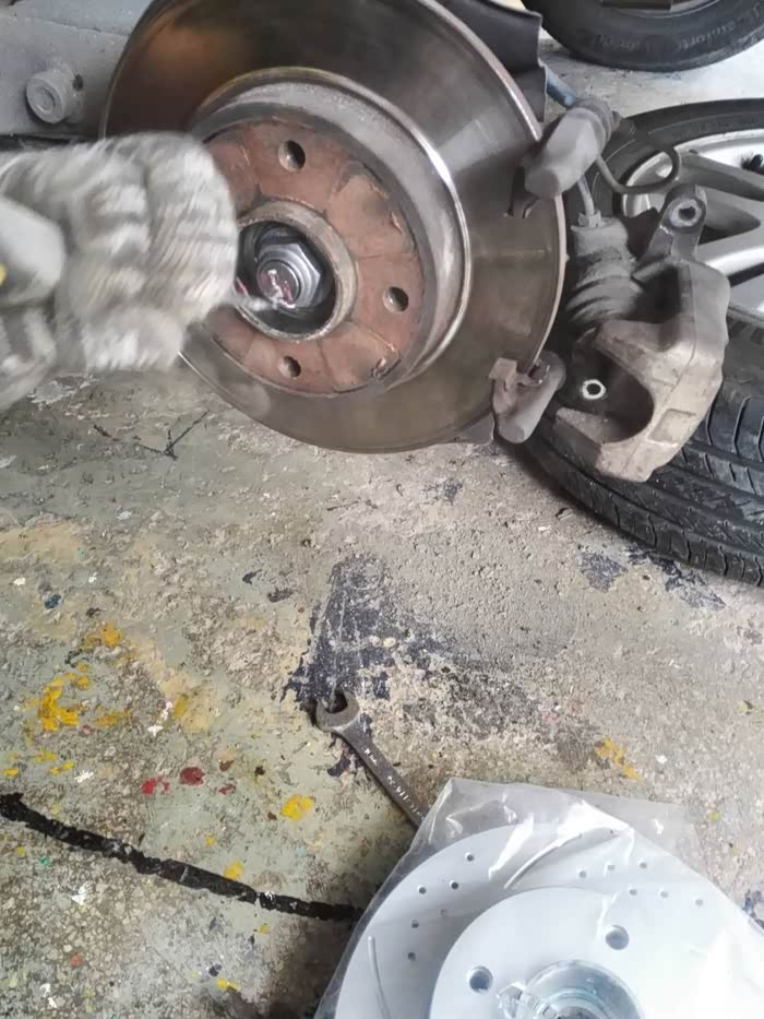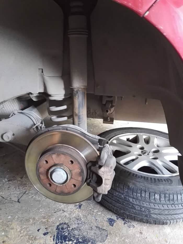 这是师傅在搞折弯的销子,相当防止转动,但是师傅太粗糙了,一阵心疼我的螺杆,,下面是买的新刹车盘怎么,样有没有高档段感觉