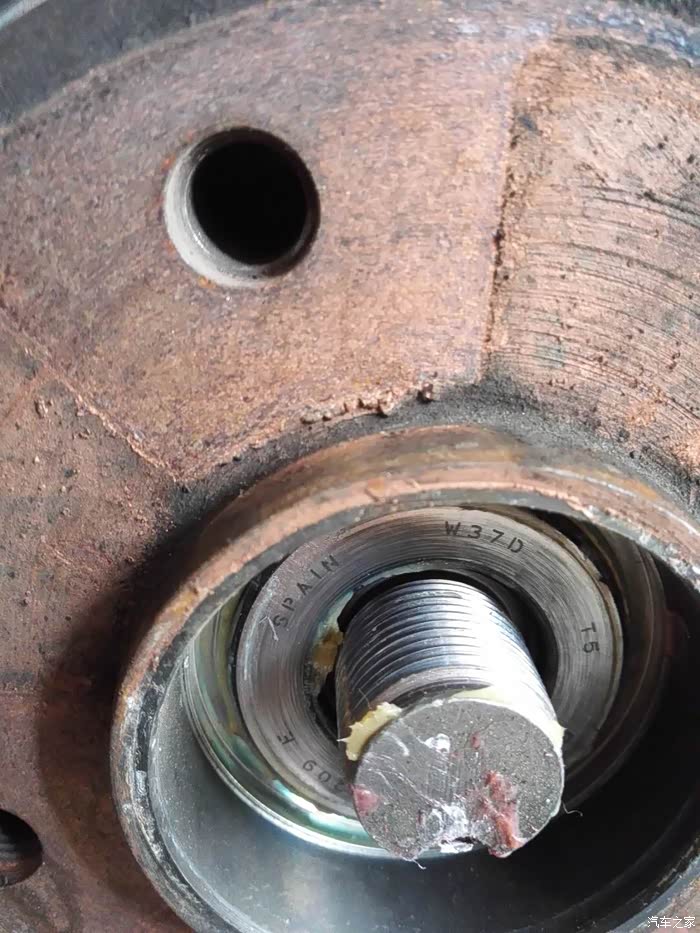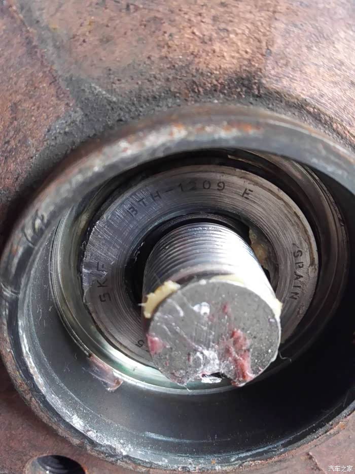 西班牙产的SKF轴承,不过要说一下与我买的刹车盘轴承不一样,我买的轴承中间还有一个管子,不知道好不好,但是我分析,原厂这样设计轴承蛋子肯定比我买的要大,大就耐用,在一样的条件下,,原厂还是好点