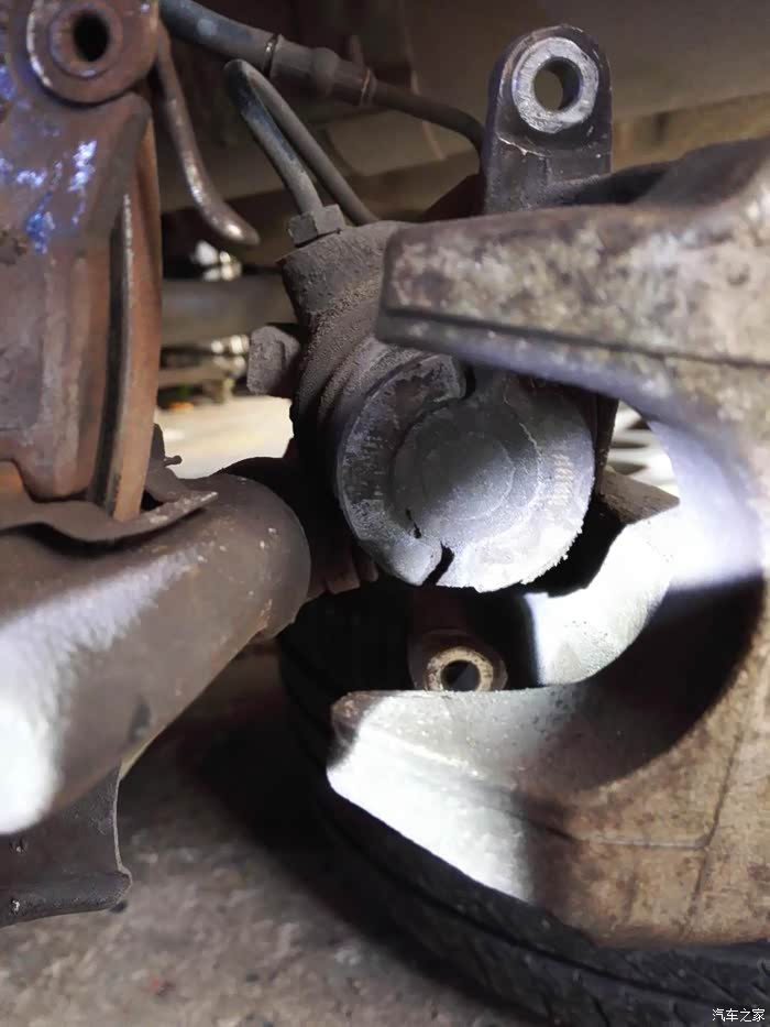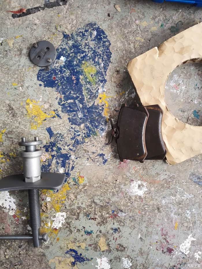 刹车片太薄,分泵太出来了,怎么都搞不进去工具,折腾了1个小时