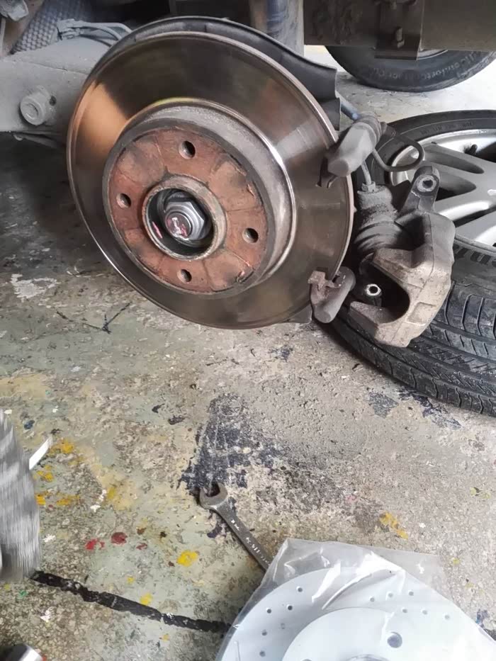 说句实话我觉得刹车盘磨下去1MM2MM都没有必要换刹车盘,从节约的角度,但是分析这一套东西带工,还是可以,最重要的是轴承换新了,不会担心一会轴承 的问题,至少在我淘汰这个车前