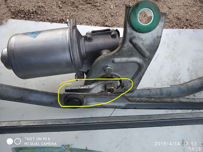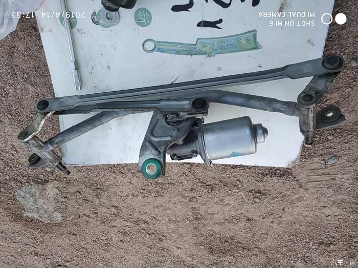 调试雨刷里,走了弯路,两只手油乎乎的,弄得人很烦躁。强迫自己冷静下来,通电,注意到电机带动齿轮轴是顺时针转动,机构部分连动雨刷平常里在前档的最低点,才确定出机构活动件放置的位置,如图。如果拆电机时拍照了,则少走许多弯路。