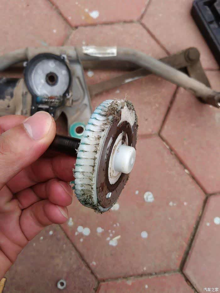 最近老三雨刷声音很大,突然就坏了:开雨刷,只有电机嗡嗡转一阵,雨刷不动。拆开后,发现塑料齿轮已经被磨秃了。电机内部还好,几乎没有进水的痕迹。因没有拍照,借用了本坛图片。