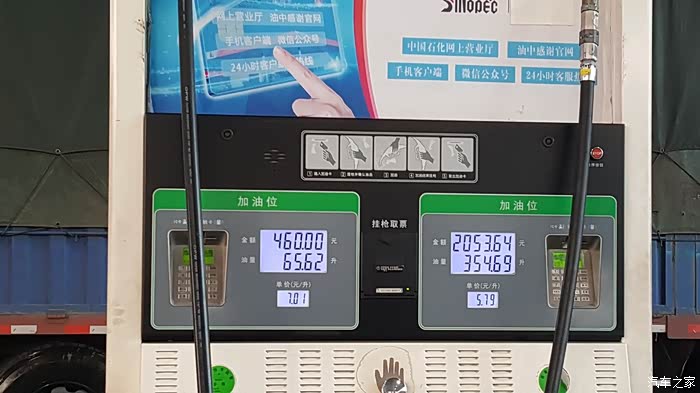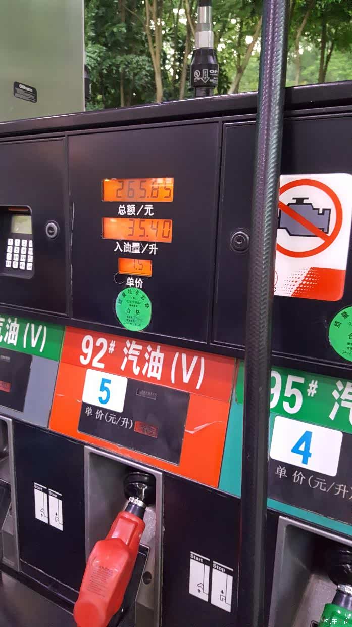 再次加满油,跳枪显示35.39升。
