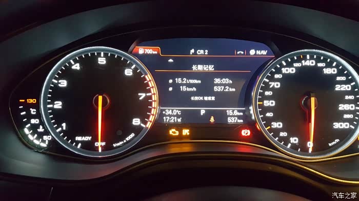 1、提车后加满油后一直城区内行驶,然后国庆节出发前一天加满油跳枪显示69.14升(见图1),里程表清零。
