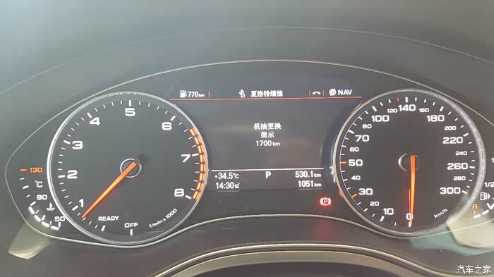 回程前加满油,跳枪显示52.69升,此时已跑530.1公里。此时可以计算出这阶段的综合油耗:52.69/530.1=0.0994(油耗9.94升/百公里)。