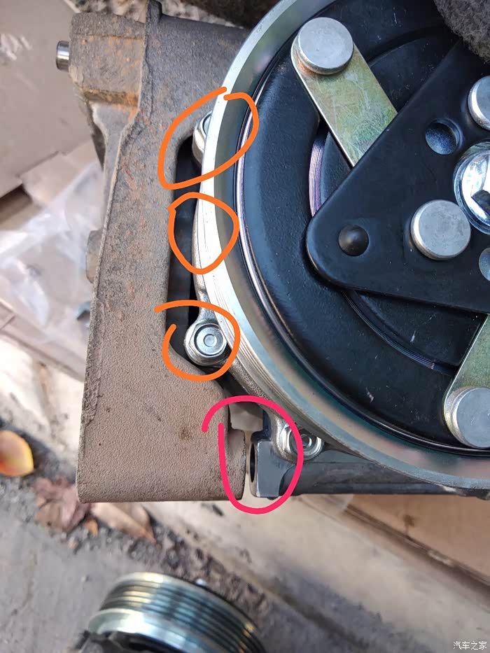 功课做得不到位,把旧压缩机卸下后就把新的装上,拧个半天螺丝发现拧不到位,只能把它卸下来