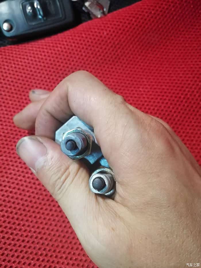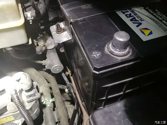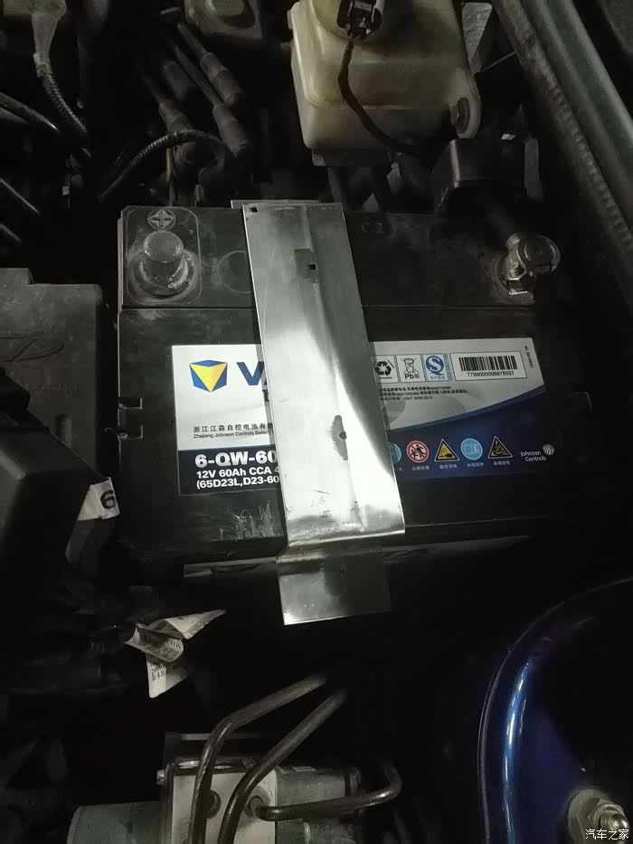 电瓶13年换过一遍,今年经常一两个月不动车,结果电瓶生生被放光了电,而且充不进去电了,换了块瓦尔塔,同样的容量,但是放电电流小,只有420A,原配的480A,而且原配的顶部是凸字形,这难不倒我,自己拿不锈钢做个紧固件