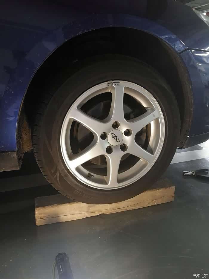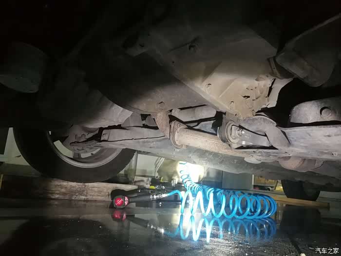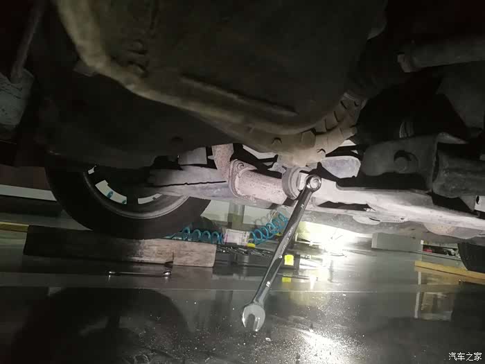 条件简陋,没有举升机,那就土办法,木方子搞定,这样方便在车底爬来爬去