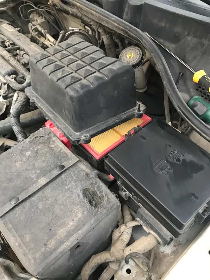 之前保养的时候换的箭冠牌滤清器,AIR FLOW箭头表示气流方向,箭头朝上,之前的应该是装反了。