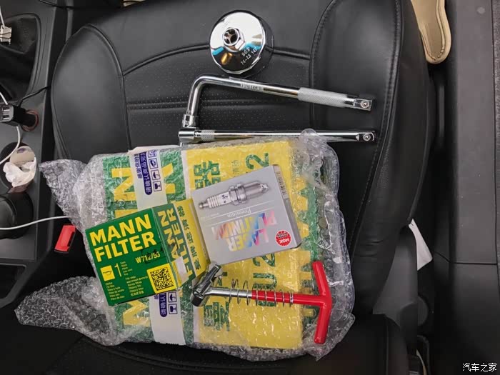 2014款荣威350S手动迅驰,4年5万公里,最近感觉冷车点火抖动,在网上买了NGK双铂金火花塞,型号PFR6Y 9331。电极间隙0.8mm,热值6,螺纹直径14mm,卖家送了16mm的火花塞扳手。最近空调也有异味,也买了曼牌滤清器三件套=空调滤清器(CU24015)+空气滤清器(C26111)+机油滤清器(W712/55)。