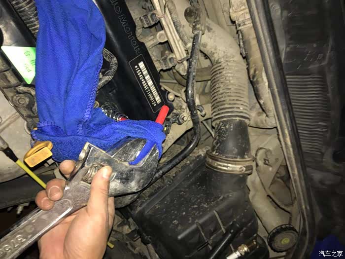 吹干净就可以开拆了。火花塞专用扳手顶部有橡胶圈可以卡住火花塞,方便完全拧松火花塞的时候可以把火花塞带起来,所以放入扳手的时候,轻轻往下压着扳手转动,感觉扳手卡住火花塞就可以用力拧了,拆卸过程中由于太紧,找来特大号活动扳手助力