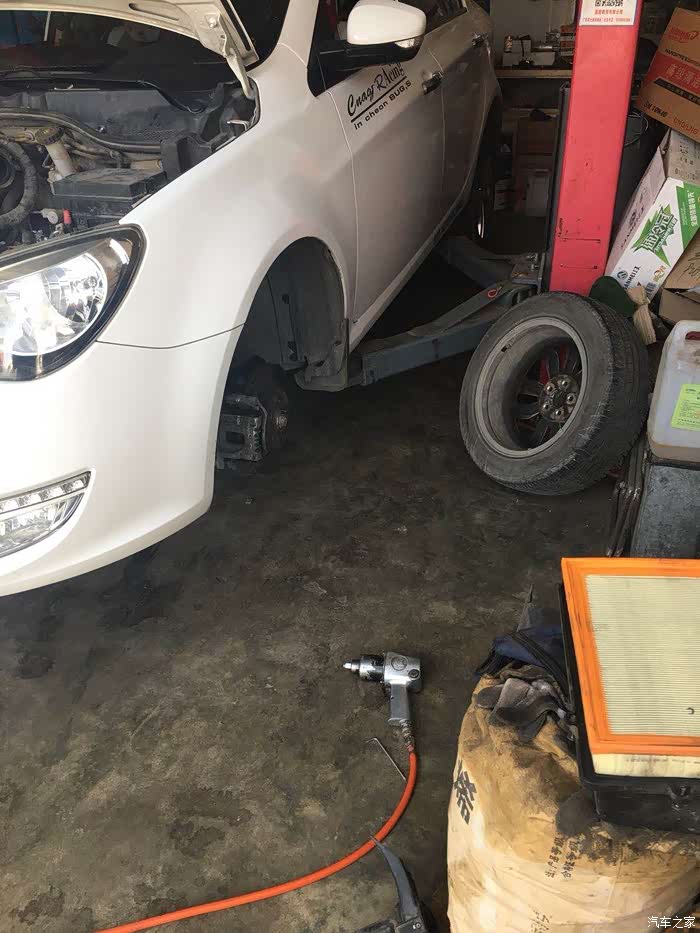 然后还要拆发动机和变速箱连接处的螺丝,因为空间比较狭小,没有拍到照片,拆完以后就把车升起来,开始拖鞋!